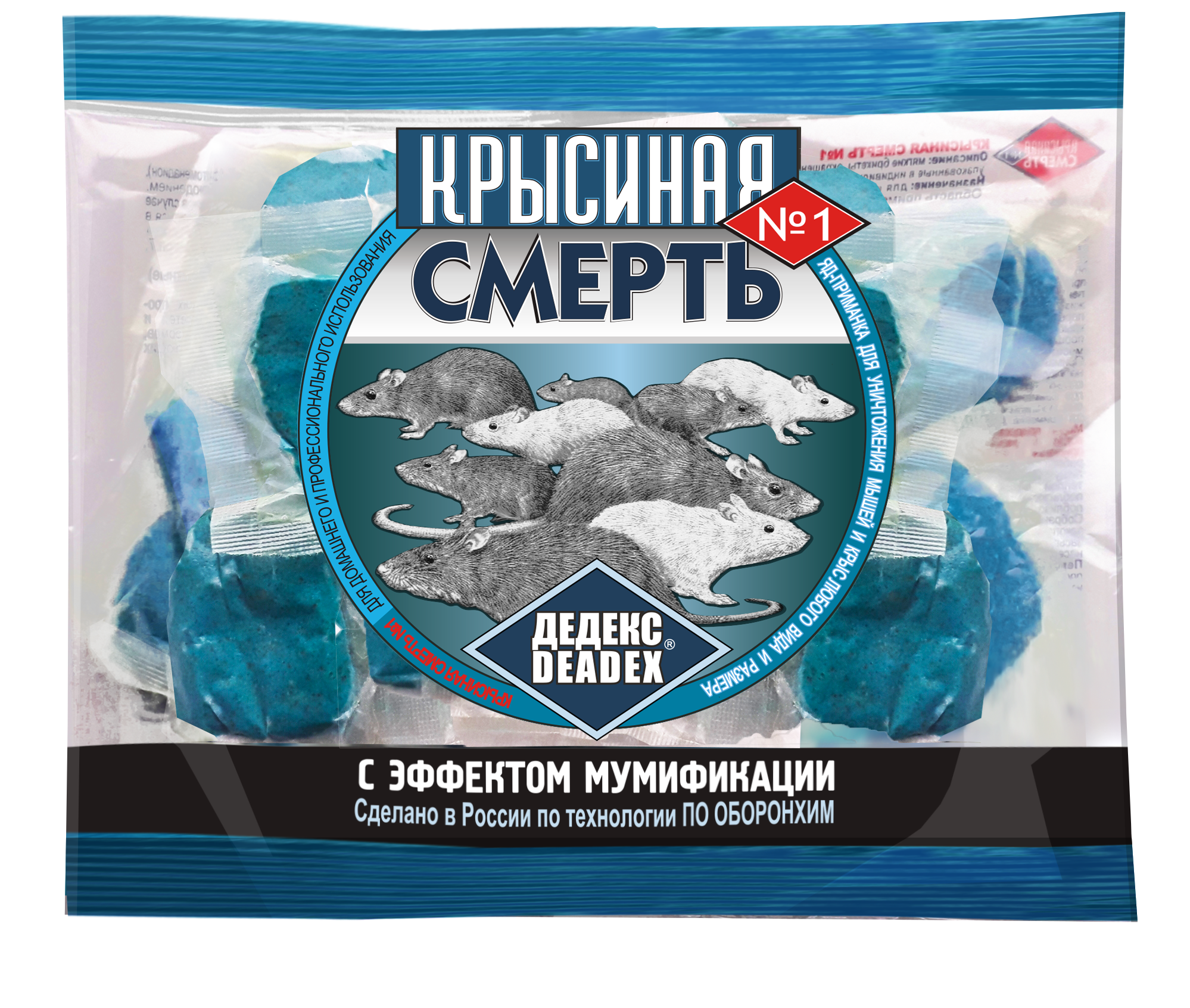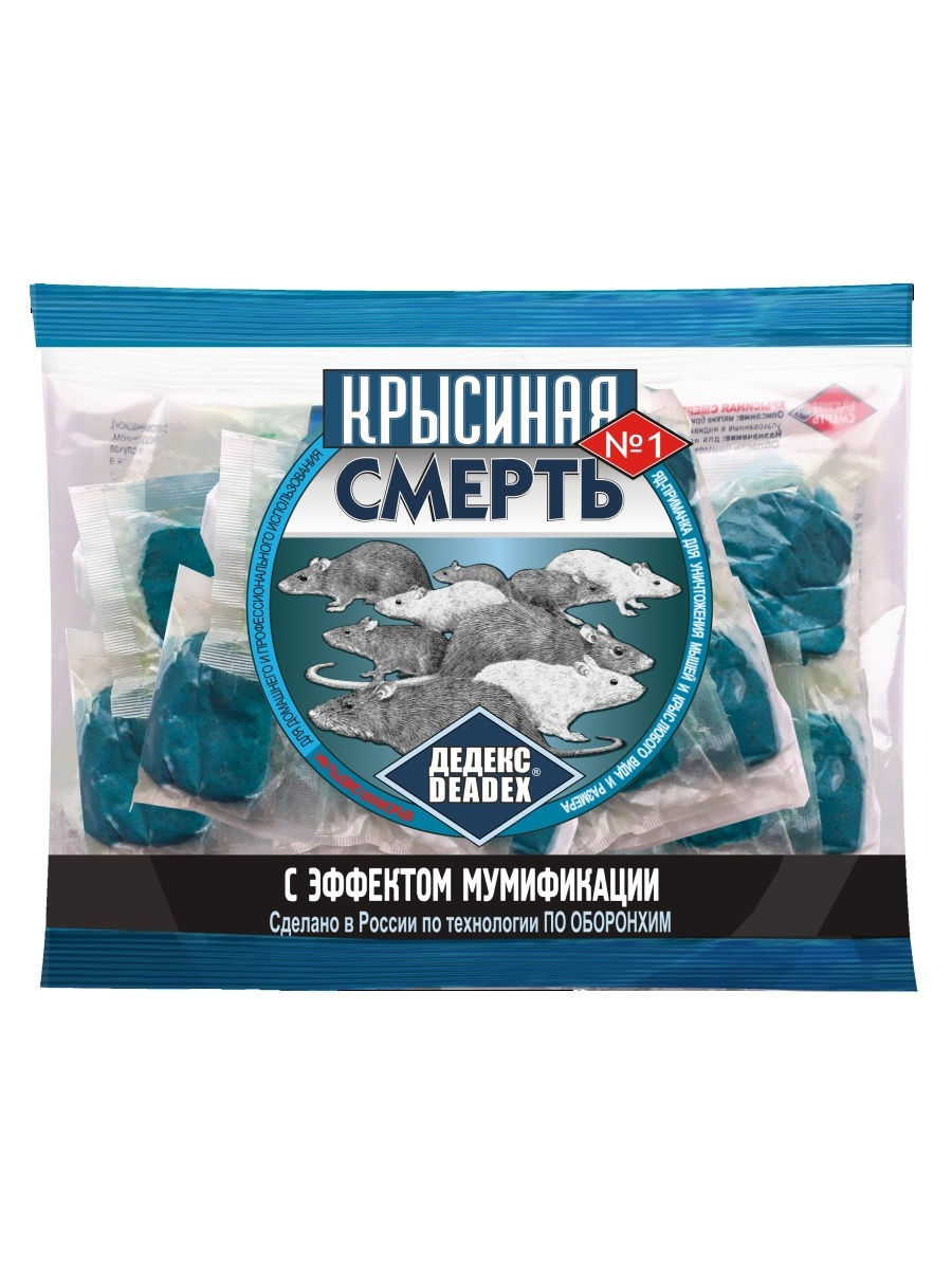 Средство родентицидное Крысиная отрава для уничтожения серых и черных крыс, домовых мышей, мышей полевок и других мышевидных грызунов на застроенных и незастроенных территориях населенных пунктов. Представляет собой готовую к применению приманку в виде мягкого брикета синего яркого сигнального цвета.